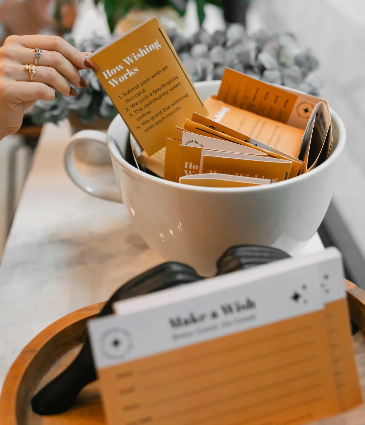 2. Drop it in the Wishing Cup: Place your card in the wishing cup near the register.
